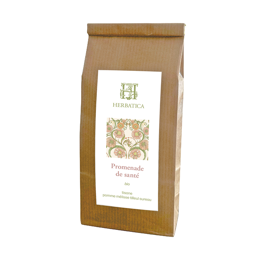 Inspirée par la douceur des balades en pleine nature, la tisane Promenade de Santé Bio rassemble des plantes qui ont traversé les siècles pour soutenir le corps et apaiser l’esprit. La mélisse (Melissa officinalis) et le tilleul (Tilia cordata) favorisent la détente et la sérénité, la pomme apporte douceur et équilibre, et le sureau (Sambucus nigra) soutient naturellement le système immunitaire.